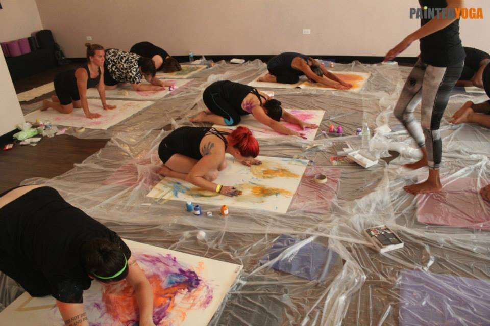 Painted Yoga was created to inspire creativity and encourage others to express and rediscover themselves through art and the practice of yoga. In both art and yoga, there is complete freedom to just “be”. No right or wrong; everything is just a mere practice, an exploration. There is an absolute connection of mind, body and awareness. The marks left on the canvas are as unique as the one who makes it. In the end, each student will have a beautiful piece of art they will have created by simply letting their breath and inner spirit guide their movements across the canvas.